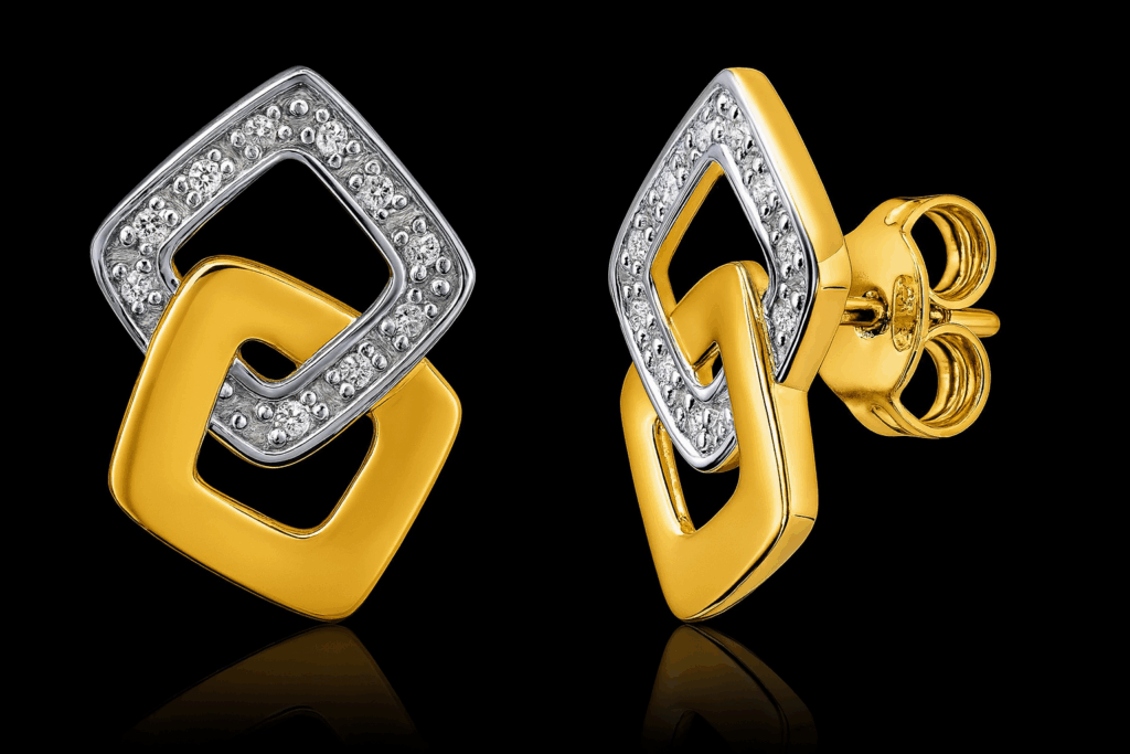 Boucles d’oreilles Clous Or Jaune et Blanc Diamant GH P2