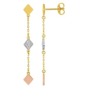 Ces bijoux d’exception sont conçus autour d’un diamant central de 0.06 carats, serti avec une maîtrise pour maximiser son éclat et son feu. La couleur GH du diamant offre une belle blancheur assortie d’un éclat prononcé, garantissant que ces boucles d’oreilles captureront la lumière à chaque mouvement.
